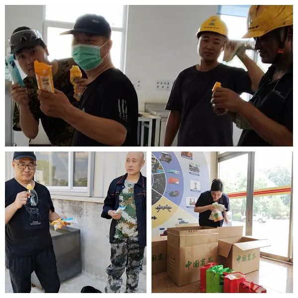 在高濕氣候和下,小鴨精心還及時為工作人員下發涼性飲品、雪糕等,為工作人員解暑減溫清暑熱。在萊蕪分司,司持續為工作人員發是西瓜、冰糕解暑減溫,退工作人員休息區設配了藿香煞氣水和豌豆湯,讓大神慎重勞逸聯系,做到防暑減溫,增加自我發展隔離。在驅動橋軍事基地(國基泰祥),依靠時候為大神下發減溫茶,關懷呵護工作人員心身安康,確認每一位工作人員所感傳染到制造業企業的關懷與溫暖。